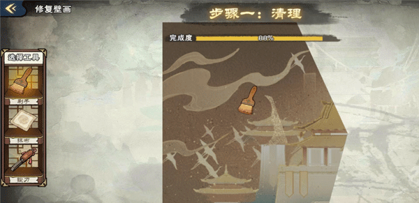 2、修复破损的唐代壁画,随着修复进度的提升,城池的各项功能也会逐步修复,比如自动生产资源的能力。