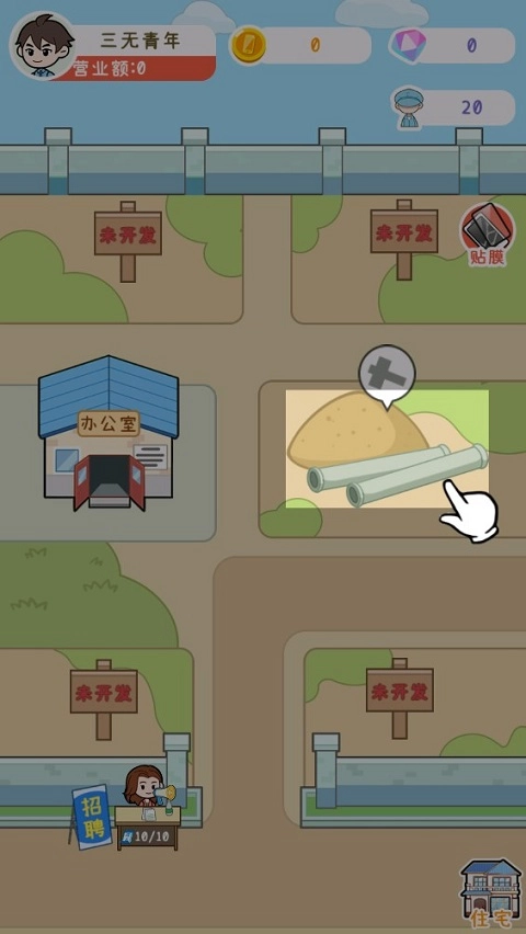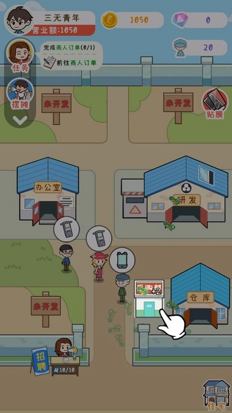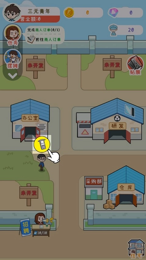 7、若已具备上述条件,还需招聘工人以完成手机生产。点击门前路过的行人,就能完成招聘。