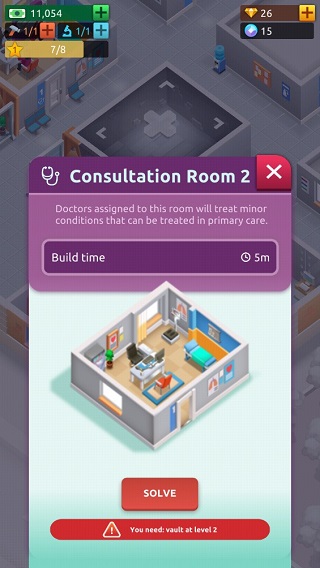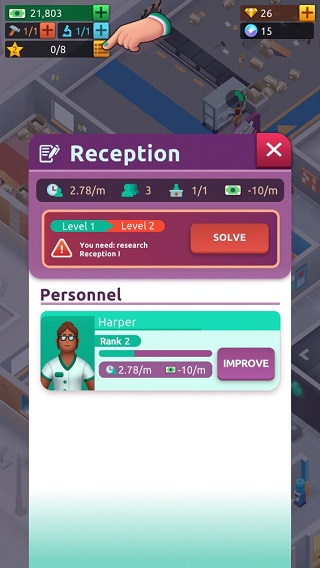 《医院帝国大亨》手机版是一款主打点击与放置玩法的模拟经营游戏。在游戏里,玩家担当一家医院的管理者,你的职责是借助持续解锁的新科室,扩大医院规模,通过构建完善的医疗体系,助力患者攻克各类疑难病症。游戏采用俯瞰式的2.5D视角,玩家得以全面掌控整个医院场景。依据每日医院的实际情况,实时调整策略,既要满足患者的治疗需求,又要提高服务品质,缩短治疗时长。