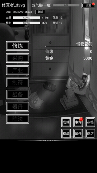 ⑤战备就是背包,通过修练等级解锁的那种,可以囤符就对了,没什么好说的。