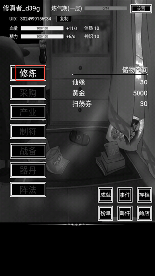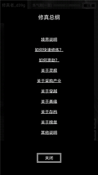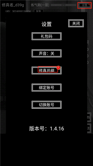 6、新手如果不会玩的话,点击设置,点击修真总纲;