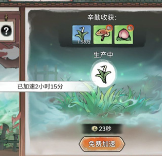 在这种情况下,如果我们有足够的时间等待,完全能够卡着1分钟的剩余时间。(参照上图)我们仅使用9张加速符,加速结束后,剩余的生产(建造)时间小于1分钟,如此一来,系统就会为我们提供免费加速。