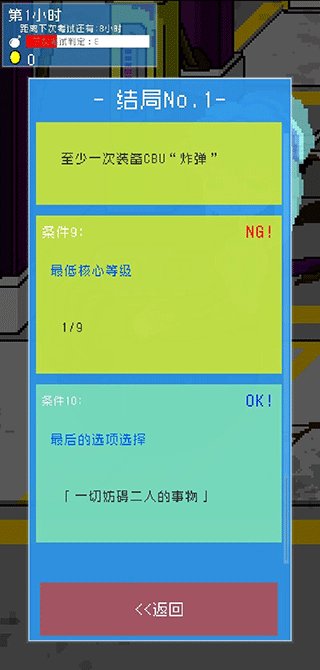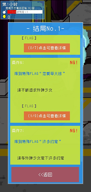 获取真结局所需的flag就是这些,只需达成游戏要求的数量,无需全部获取。每个flag所需达成的数目都标在图上。要是你解锁了所有条件,最后会出现一个特殊选项“一切妨碍二人的事物”,选它就好。大家随时能打开结局查看提示,它会告知你还差几个flag,这样更有目标性。看看广告也无妨,毕竟运营商也要盈利,咱们玩家别的没有,时间还是挺充裕的。那就祝各位都能成功抱得炸弹少女归啦~Wink~