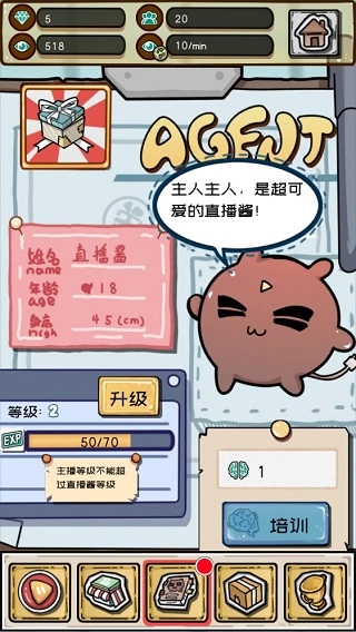 当然,要是想快速提升直播名气,不妨与全国各地的主播进行PK。PK模式有两种,分别为主线和挑战。通过PK,直播酱(也就是所谓的经纪人)能获得经验。随着等级提升以及接受培训,还能解锁更多直播新玩法。感兴趣的玩家,不妨努力尝试,争取发展成为全国最强直播间!