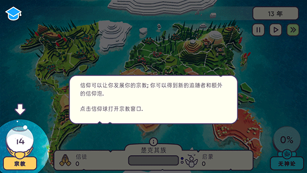 4、信仰可以让你发展你的宗教,可以得到新的追随者和额外的信仰泡;