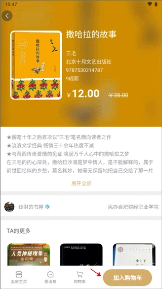 2、了解这本书籍里面的具体内容之后,点击下方的加入购物车,成功加入就可以点击左边的“购物车”按钮。