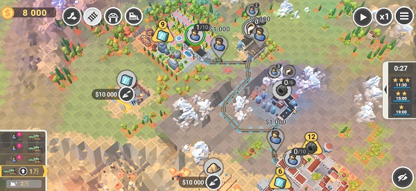 第二个难点:不要摧毁超过5000的物体,尽量避开石头树林等物体,可以适当绕路,也要注意绕路资金缺乏。