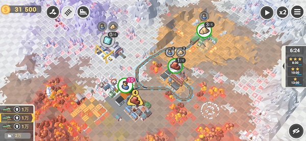1《铁路工程师》是一款以关卡形式展开的铁路规划策略类游戏。在游戏过程中,玩家需合理运用有限资金,借助修建铁路、调度火车以及运输货物等手段,满足小镇不同地点的物资需求,从而完成每一关的挑战。随着不断积累与发展,逐步将自己的小镇打造成繁荣的枢纽之地!