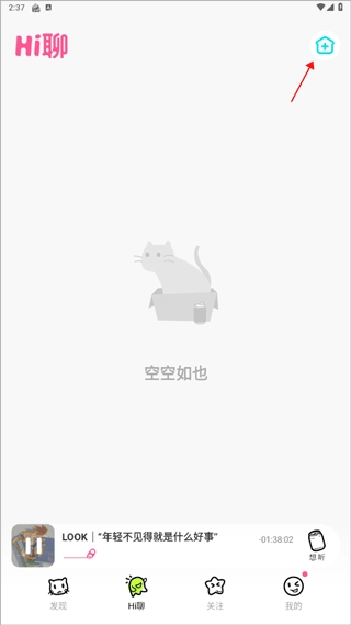 1. 打开软件,进入hi聊界面,点击右上角的“+”号。