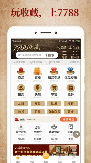 古玩城、交流会、论坛交流、专家鉴定等专业化版块;
