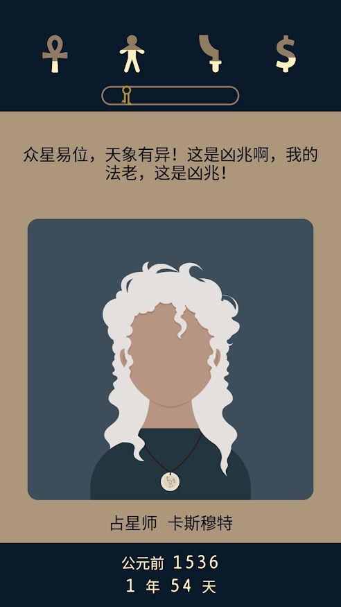 玩家在游戏中穿越到公元前1750年的埃及,不知为何会选中你来到这个时代。按照以往那些俗套剧情,此事必定暗藏玄机。你会察觉到,所有与你相关之人,和你的关系都发生了改变。因此,任何行动都务必谨慎小心。而所有的谜团,会随着游戏剧情的推进,缓缓展现在你眼前。