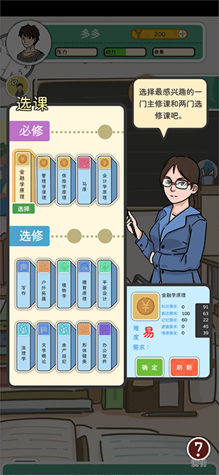 4、模拟养成!游戏中开放了上百门课程,自由挑选你喜欢的课程,养成主角的各种能力。