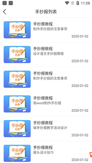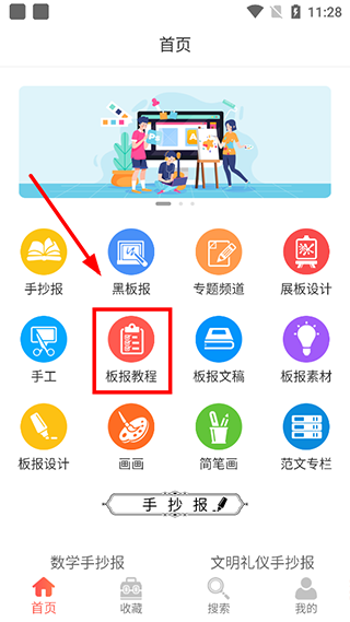 开启手抄报全集app,轻点【板报教程】,随即跳转至教程页面,该页面列表中包含专业的教学视频,大家能够依据视频的指引进行学习。