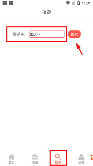 在首页底部点击【搜索】,输入关键词展开搜索,便能查看软件内相关素材。