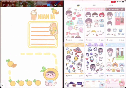 1、第一步,借助分屏模式,同时在屏幕上开启超萌鸭app与千本笔记。