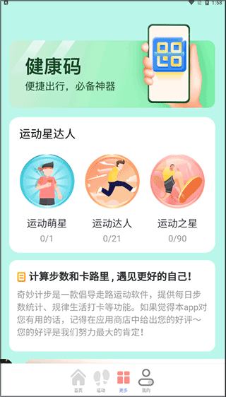 奇妙计步App,一款在线计步服务软件。在这里,用户能为自己量身定制合理的健身计划,快速提升身体素质。它以科学方法助力用户高效瘦身,还精心准备了独特食谱,助我们迅速摄取多元营养,维持运动时的良好身体状态。此外,该软件每日提供各类运动攻略,方便用户更好地学习锻炼。软件还集成健康码,出行极为便捷,同时包含众多食物功效与作用的讲解,帮助用户在饮食方面保持良好健康。有需求的朋友,快来下载体验吧!