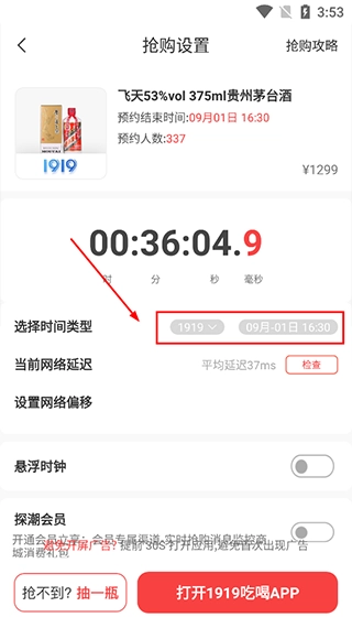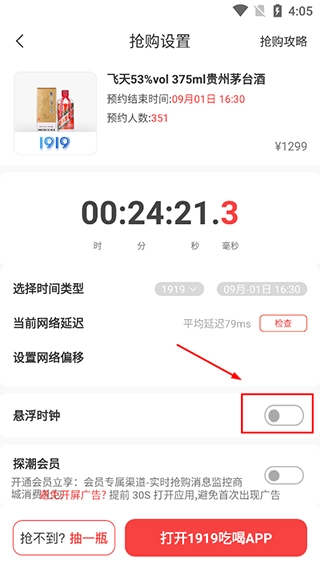 4、专业抢酒,悬浮时钟,到时提醒,价格行情都可以便捷去进行了解;