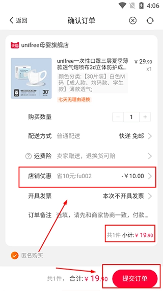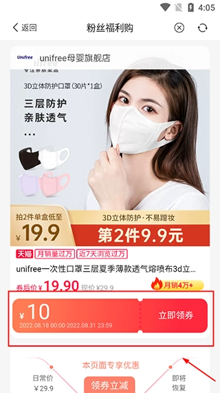 第四步:成功领券后,页面将自动跳转到商品购买页,点击[立即购买],就能使用优惠券以优惠价格购买商品。