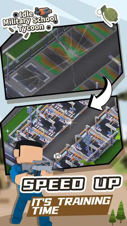 2、打造最为专业的训练设施,培育最为优秀的士兵。涵盖体能训练、射击练习,从游泳项目到各类比赛,直至跳伞训练,全方位提升士兵技能。与此同时,炮兵与坦克部队将为你的军队提供强有力的火力支持。