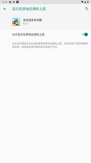 1、打开下载好的游戏语音变声包,我们需要将悬浮窗的权限打开