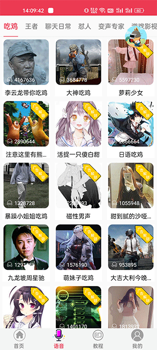 2、里面包含各类游戏,像LOL、吃鸡(绝地求生)等众多热门游戏,此外还有李云龙、呆萌萝莉等语音包,游戏主播们都在使用。