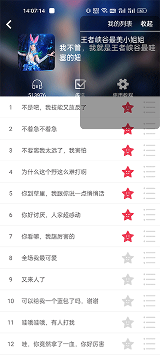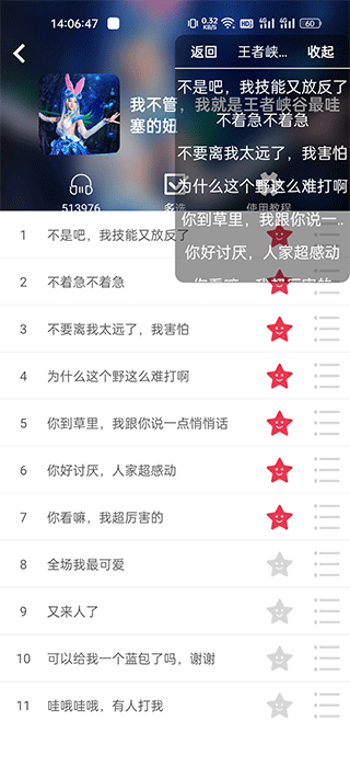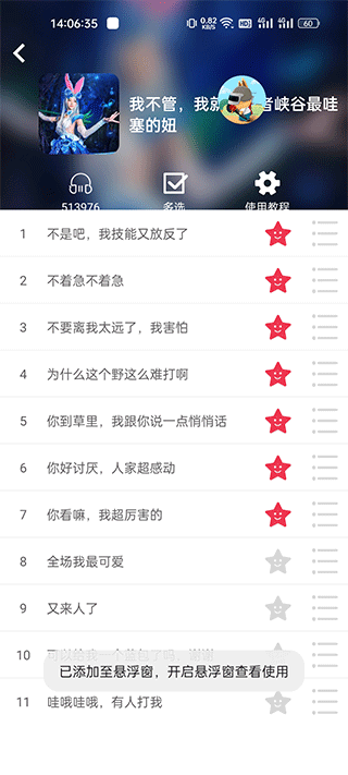 6、打开已添加的语音包,便能看到各类语音。在游戏里,只需开启语音功能,挑选一条语音播放,就会出现相应的话语,十分有趣。