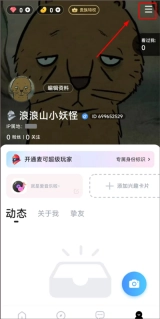 2、跳转至【我的】界面后,点击右上角条状图标,如下图: