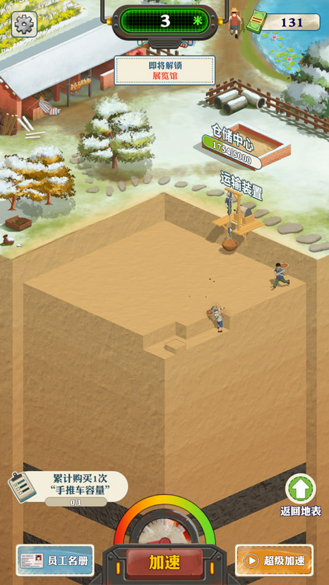 4、解锁你的初级仓库,可容纳更多沙土容量。