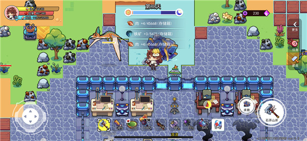 恐龙小岛有着丰富多样的玩法,其核心玩法主要借鉴了浮岛物语与饥荒。在游戏中,玩家将置身于一个满是恐龙的原始小岛上,迎接各式各样的生存挑战。玩家可通过操控方向键,灵活控制角色的移动与前进方向;点击技能键,就能释放出各类强大技能,从而自由自在地在这座岛屿上实现自己的探险计划。