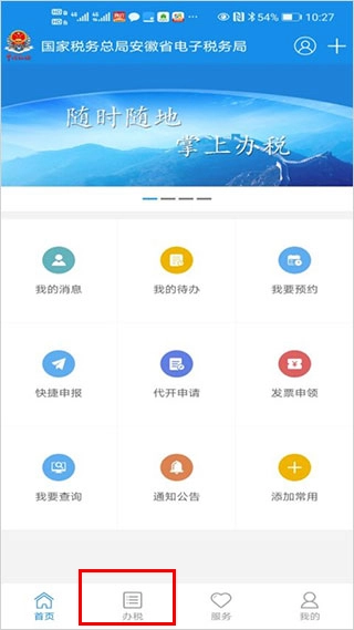 1、下载并安装本站提供的app,打开进入办税界面。