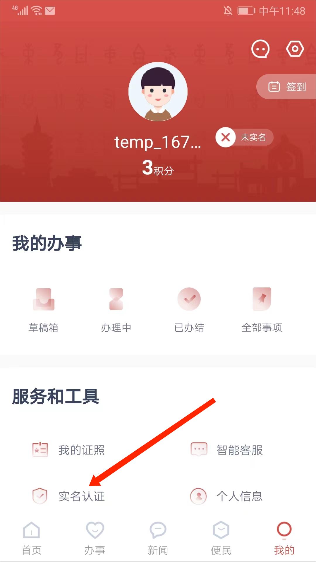 2、进入【用户中心】界面,在服务和工具栏目选择【实名认证】选项,