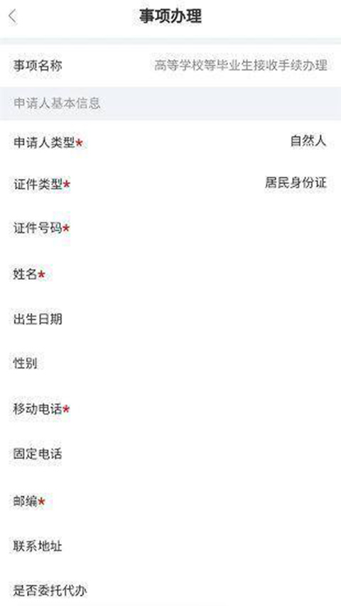 3、进入【事项办理】界面,把用户的各项信息提交完成办理,档案即可转出。