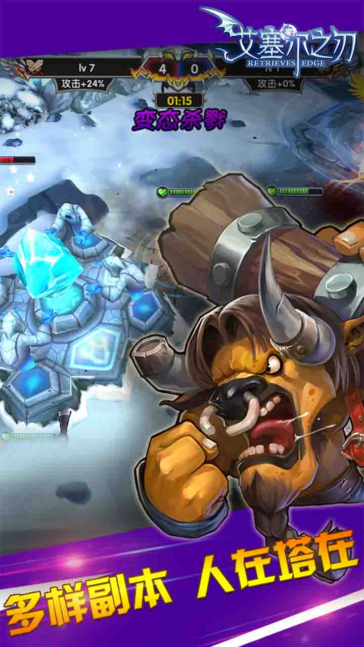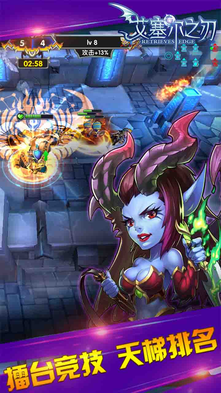 1、《艾塞尔之刃》是一款融合了大型3D动作元素的ARPG与MOBA玩法的卡牌类手机游戏。