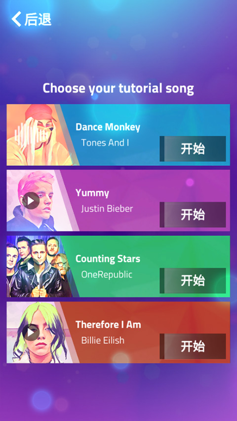 1、玩家进入游戏后,最先迎来的是教程阶段。通常情况下,该阶段很容易通关。通过教程后,玩家便能够从更多歌曲中进行挑选,其中不乏许多热门中文歌曲。