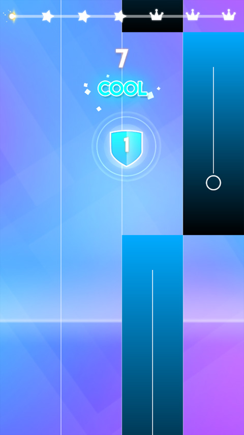 2、精准点击钢琴键可获1分,部分钢琴键较长,长按能持续得分,因此遇到长钢琴键,别只点一下,要尽可能获取更多分数。