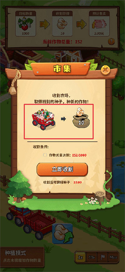 ①作物收割每次会给10种子