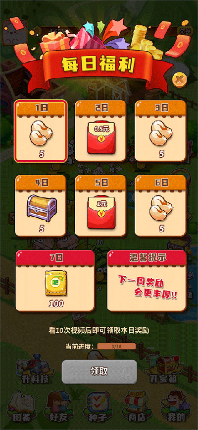 ②往后很长一段时间,这或许会成为主流玩法。把土地升满级,将图鉴全部开启,每天收割一次,加上各类加成,每天能收获几十颗种子。这种玩法所需投入的资金不算多,就好比一份长期的低保。