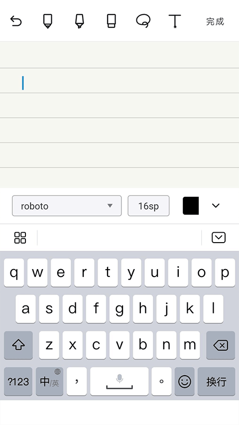 1、打开笔记后默认文本输入,要先将其退出,点击上方的“完成”就可以退出了。