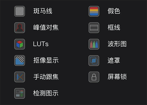 在辅助功能方面,APP更是从专业摄影师的实际需求出发,提供了一系列实用的功能,除了辅助曝光之外,还有多种辅助监看功能。