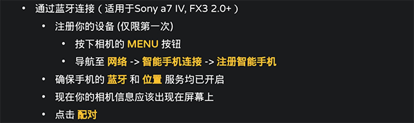 2、通过蓝牙连接(适用于Sony a7 IV, FX3 2.0+ )