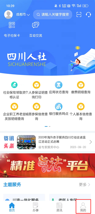 1、登录四川人社APP成功后,点击我的。