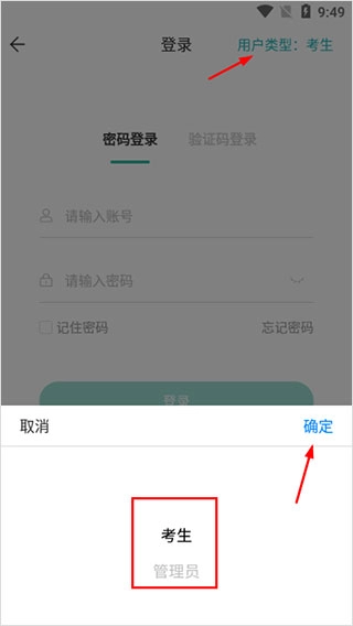 1、首先打开潇湘成招最新版本后,进入注册页面,选择用户类型考生以及管理员;
