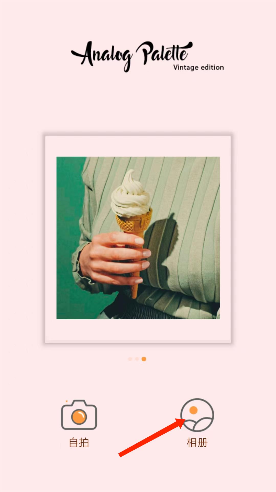 1、开启intolive官方版本,进入应用的主界面,该界面有自拍与相册这两个选项,在此我们以【相册】作为示例。