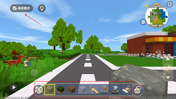 4、一个房间就创建好了,下方是格子栏,我们点击左上角的高级模式