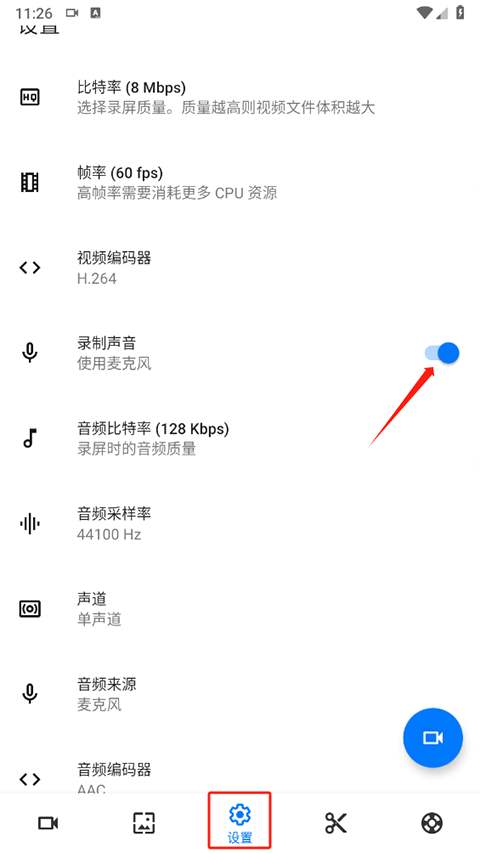 1、在设置界面内下滑页面并找到录制声音功能将其关闭就好啦