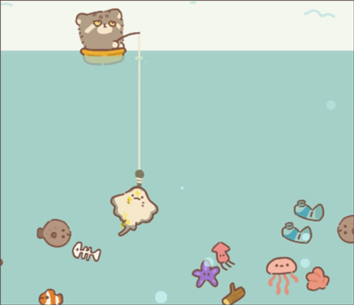 鱼塘里共有18样物品,其中鱼骨、易拉罐、塑料瓶属于垃圾。树枝、小丑鱼、比目鱼、水母、鱿鱼、螃蟹、粉色贝壳、海星、红河豚、鲨鱼比较容易钓到。海马、墨鱼、海胆、金鱼每天会随机出现一种,也有可能不出现。而当蝴蝶鱼出现的时候,池塘水面会有布灵布灵的光,就像福袋那样闪闪发光。
