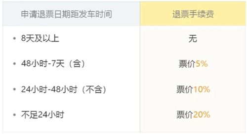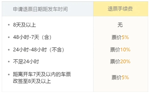 4、退票费最低按2元计收,当车票票面价格不足2元时按票面价格计收。