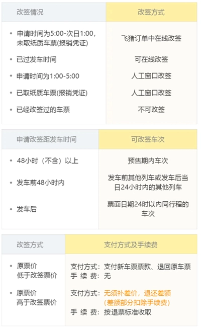 2、在列车有余票的情况下,可在原车票开车前48小时以上,且未换取纸质车票的,可在线办理,不收取手续费。