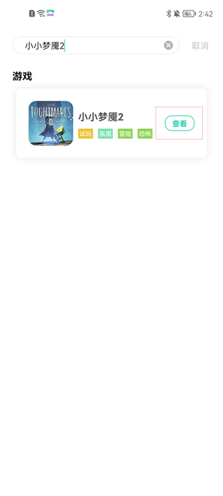 5、若你想寻找特定的某一款游戏,可点击右上角的搜索按钮,通过输入关键词进行搜索。点击查看,就能进入游戏详细页面。