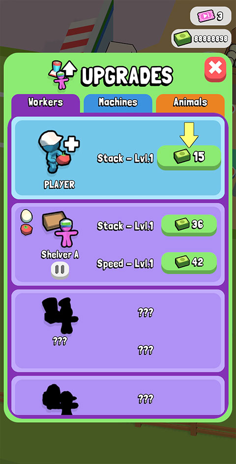 3、解锁购买更多新品,吸引更多新顾客到超市购物,打造强大的商业帝国